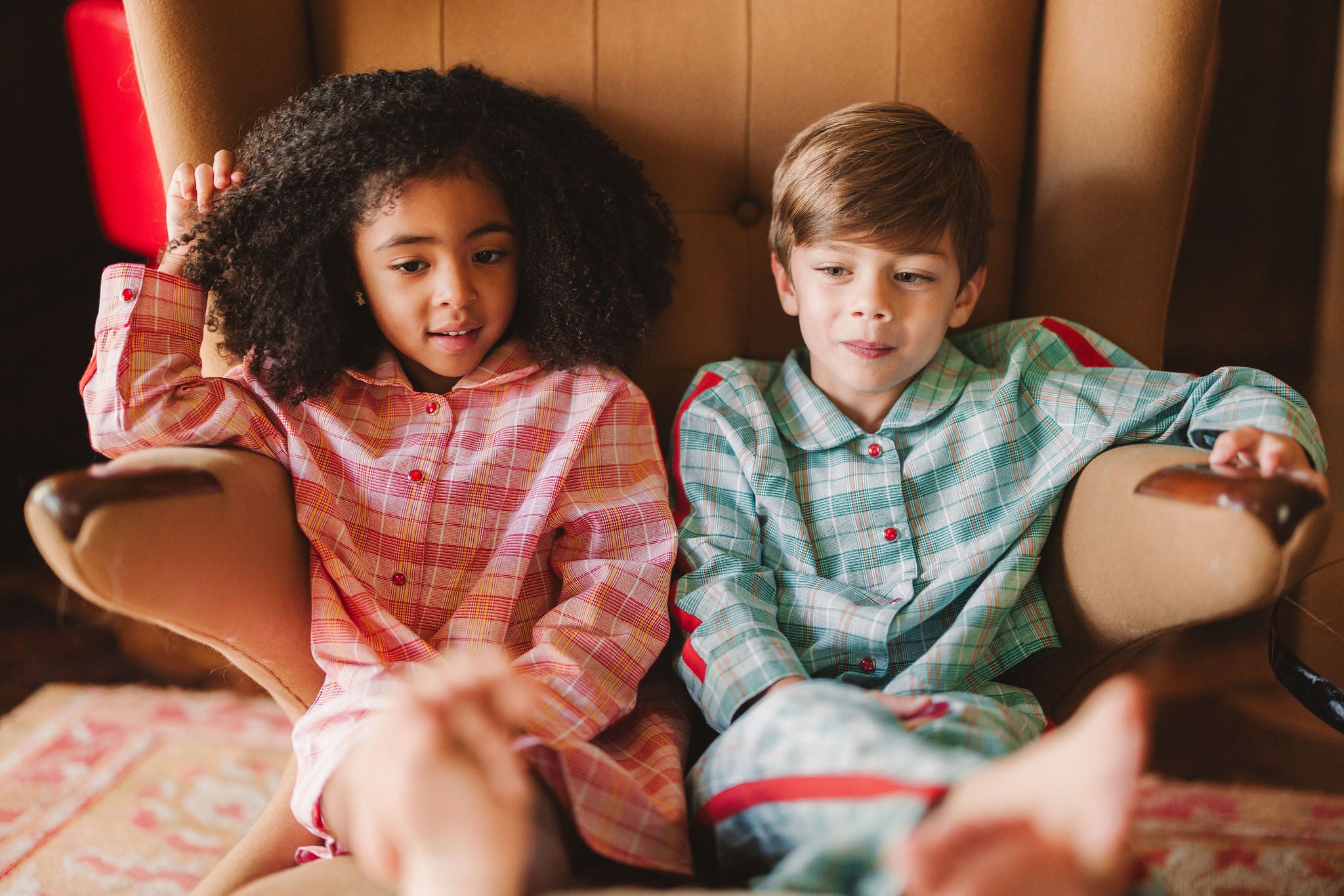 BROWN CHECK LONG PAJAMA SET