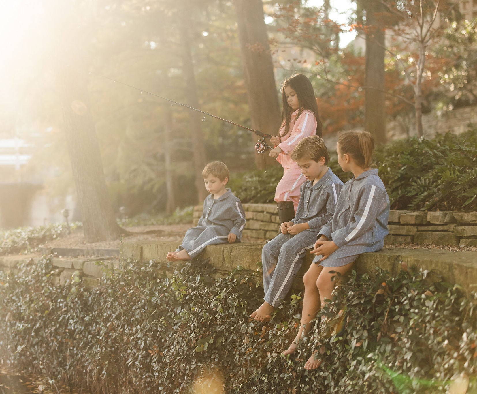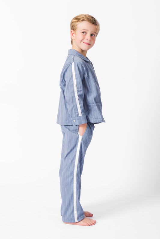 Grey Blue California Stripe Long Set