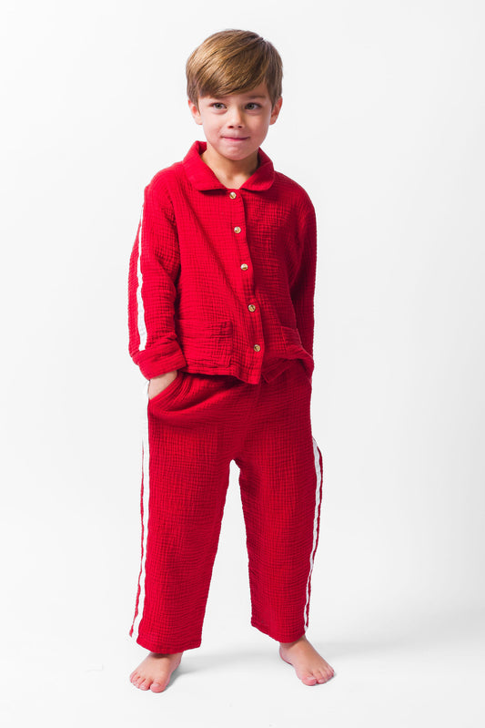 RED GAUZE LONG PAJAMA SET