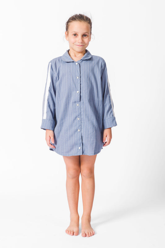 Grey Blue California Stripe Shirt Dress